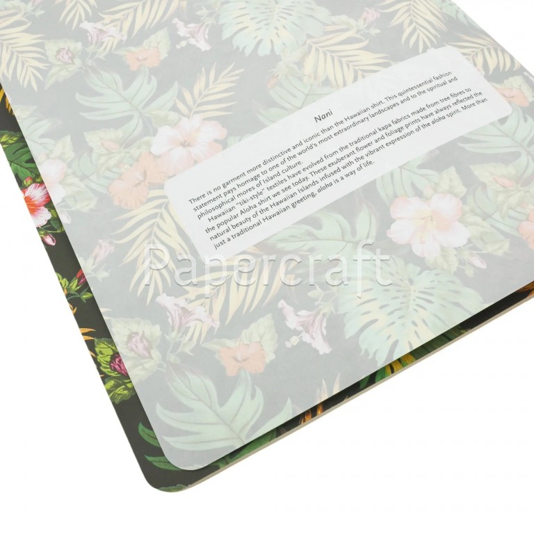 Návrh vazby Nani s bujnými tropickými květinami Havaje evokuje jak tradiční ručně malované vzory, tak i moderní potištěné látky a na stránky uvnitř vnáší atmosféru aloha. V havajštině znamená nani „krásný“ nebo „příjemný“ a doufáme, že tento bohatý květinový vzor vnese do vašeho života pocit krásy a radosti.
